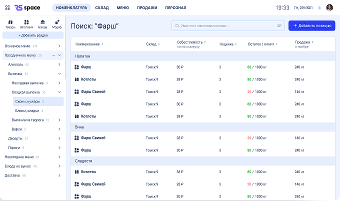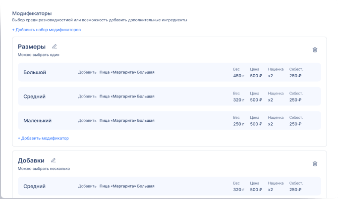 - Техкарты, модификаторы