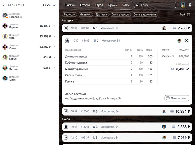 - Переносы заказов между столами